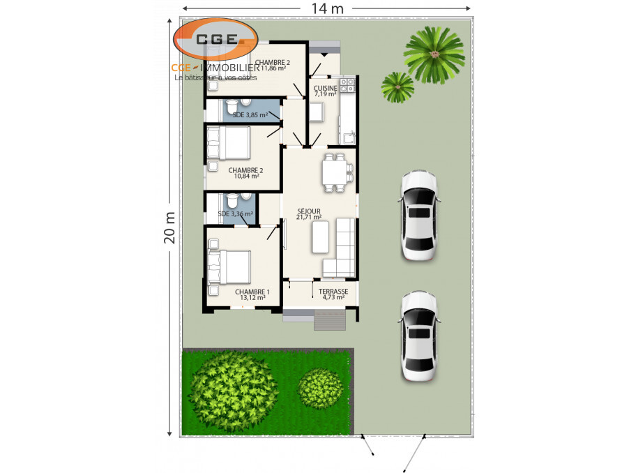 La BELLE DU JOUR F4 est proposée de base sur des parcelles de 240m². Mais elle est également disponible à la demande, sur des parcelles de 280m², comme la version proposée ici.